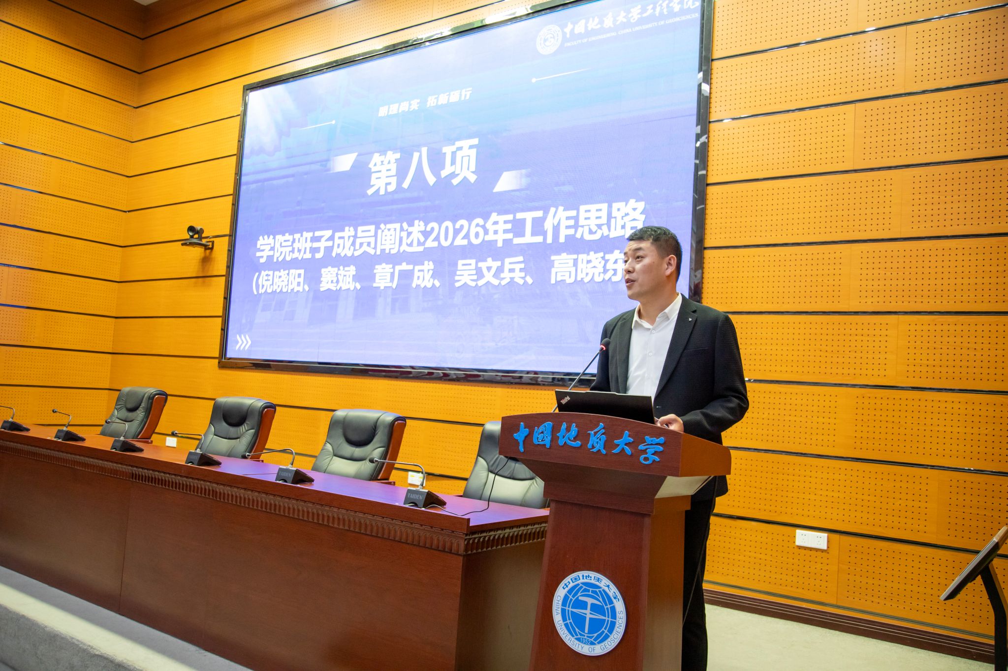 (通讯员 方长亮)2026年1月8日下午,高清av 第六届教职工大会第二次会议暨第六届工会会员大会第二次会议在南望山校区东区教学综合楼A0113会议室隆重召开。党委书记杨昌锐同志主持大会,全院教职工齐聚一堂,围绕“明理尚实 拓新砺行——为建设地质工程与人居安全领域特色鲜明、享誉国际的一流研究型学院而接续奋斗”主题共绘发展蓝图,圆满完成各项议程。