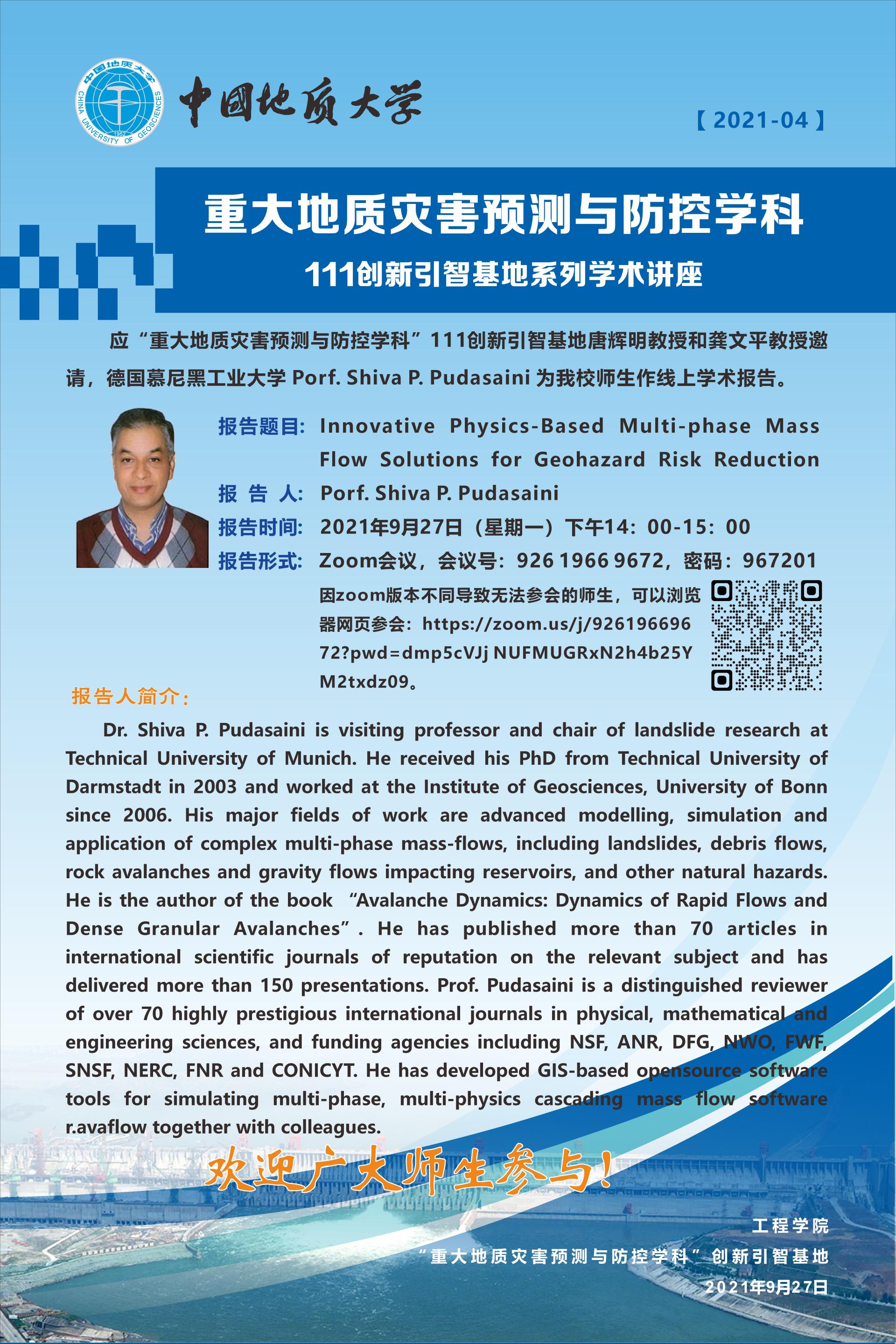 重大地质灾害预测与防控学科---111创新引智基地系列学术讲座(4)
