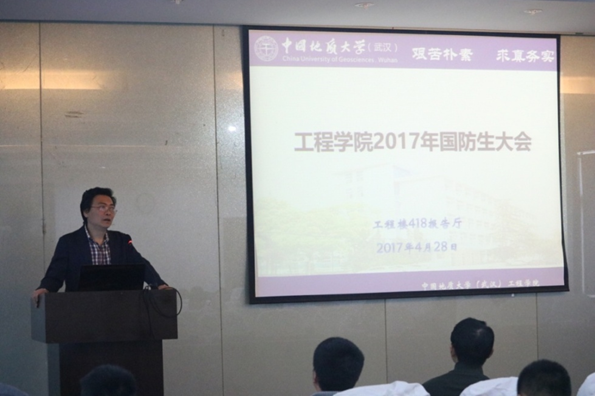2017年国防生大会在工程楼418报告厅召开。院党委副书记江广长,校国防办主任李凛,驻校选培办干事谭皓,辅导员丁继国、文新、王俊以及学院全体国防生参加了大会。