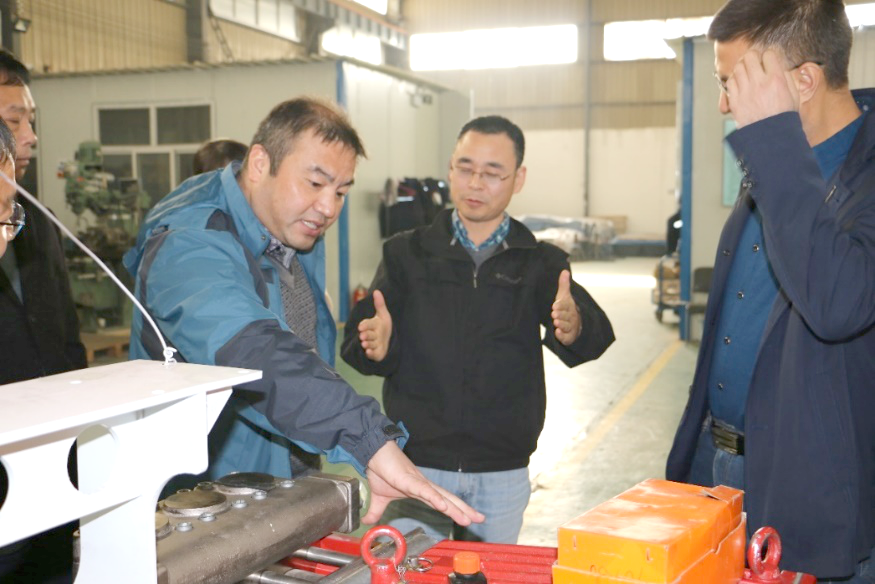 陕西省太合智能钻探有限公司董事长王义红对高清av 领导和专家的到来表示热烈欢迎。他首先详细介绍了企业的发展历程、科研成果以及发展愿景。他表示太合智能公司将不忘初心,砥砺前行。嗣后,专家们参观了目前国内扭矩最大的ZYL-17000D型矿用履带式全液压定向钻机、YSX15矿用有线随钻测量装置、YSX16矿用无线随钻测量系统、随钻测量钻具以及金刚石复合片钻头等系列高新产品,还就细节技术问题驻足讨论。