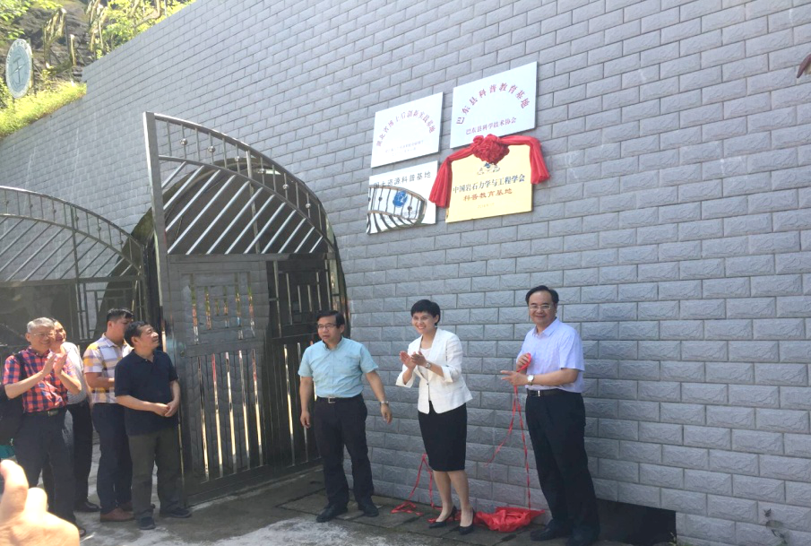 6月15日上午,中国岩石力学与工程学会2018年科普工作会议暨“中国岩石力学与工程学会科普教育基地”挂牌仪式在恩施巴东举行,高清av 巴东野外综合试验场正式被中国岩石力学与工程学会认定为科普教育基地。高清av (武汉)校党委副书记唐辉明,学科办副主任严嘉、科发院副院长成军,高清av 党委书记陈飞、副院长王亮清、副院长罗学东等一行参加了会议及挂牌仪式。