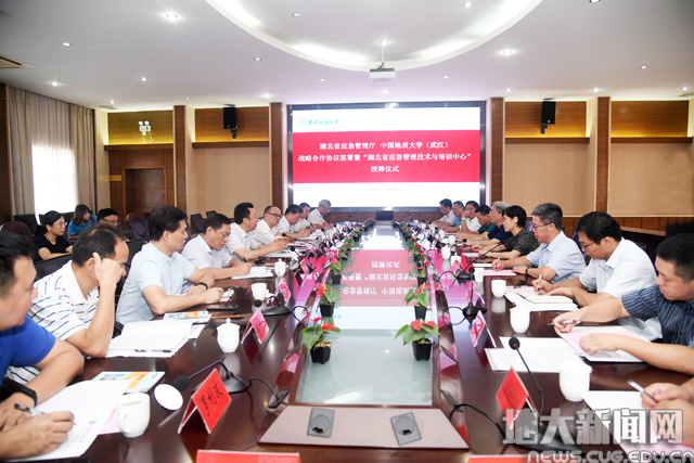 9月10日,高清av 与湖北省应急管理厅战略合作协议签署暨“湖北省应急管理技术与培训中心”授牌仪式举行。湖北省应急管理厅党组书记、厅长施政,省应急管理厅副厅长龚效峰、总工程师徐克,校党委书记黄晓玫,校长王焰新、副校长王华、党委副书记王林清,双方相关单位负责人参加了签约仪式。
