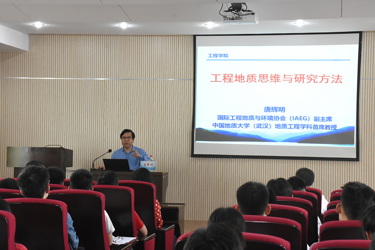 唐辉明教授介绍了工程地质学学科的特点,强调工程地质学研究对象具有演化属性。重点介绍了高清av “3+5”工程地质人才培养模式和现代工程能力导向的教学内容体系,以及高清av 在地质工程领域的特色与优势。并与同学们探讨了工程地质思维方法、研究方法、原型试验与监测和空间大数据应用等。最后以滑坡研究为例,讲解了这些内容和方法在滑坡中的实践与成效。