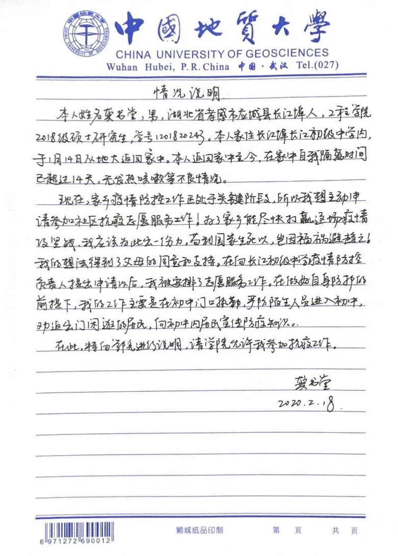 姚文昊 罗卓立 杨昊讯)龚书堂是高清av 2018级土木工程硕士研究生,他响应学院学校号召,担任抗击疫情一线的志愿者。