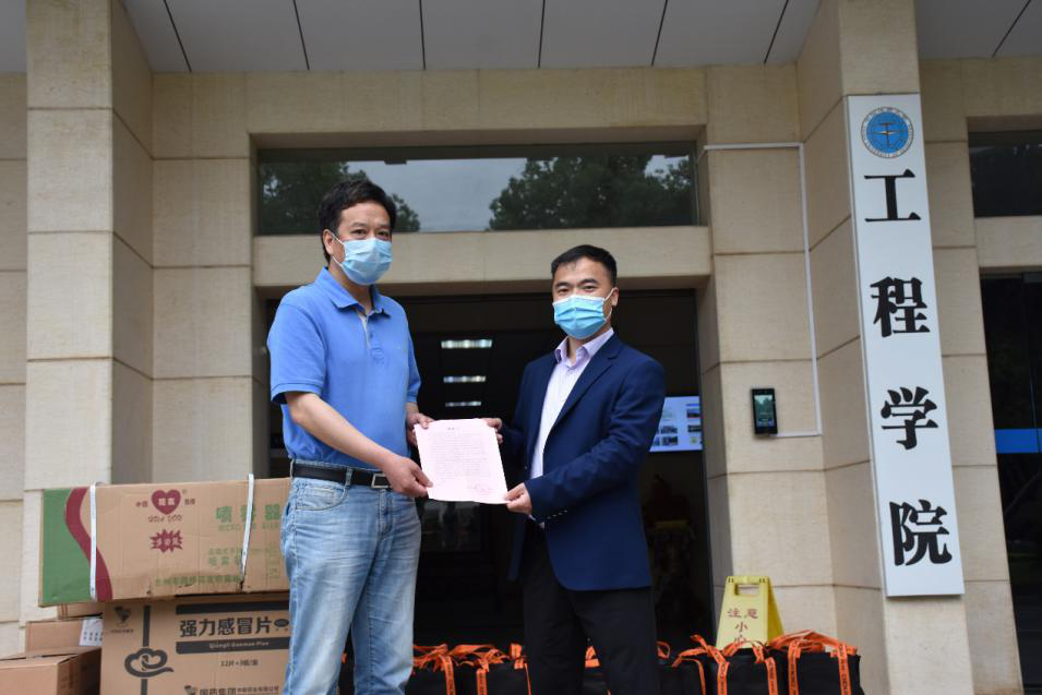 5月8日上午,上海华测导航技术股份有限公司湖北子公司总经理卢兴海、客户经理卢立飞一行向高清av 捐赠防疫物资,学院党委书记陈飞、党委副书记江广长签收物资并代表学院表示诚挚感谢。在学校统筹疫情防控和开学工作的关键时刻,上海华测导航技术股份有限公司主动与学院联系,捐赠疫情防控物资口罩3000枚、测温枪10支、PVC手套50双、大小喷壶80个、84消毒液40升、免洗消毒液104瓶。为学院有序推进师生复岗开学提供了丰富的物质保障。