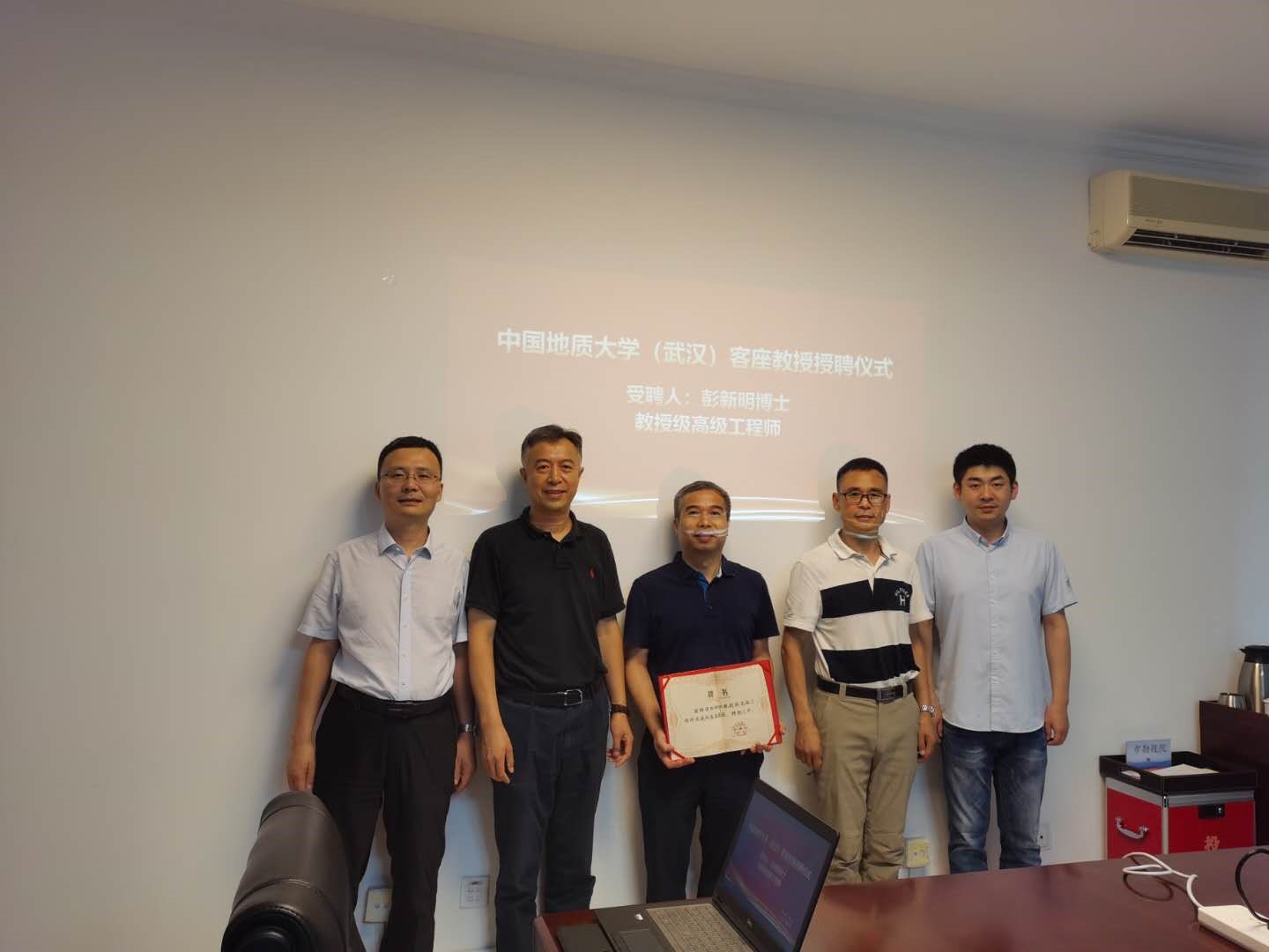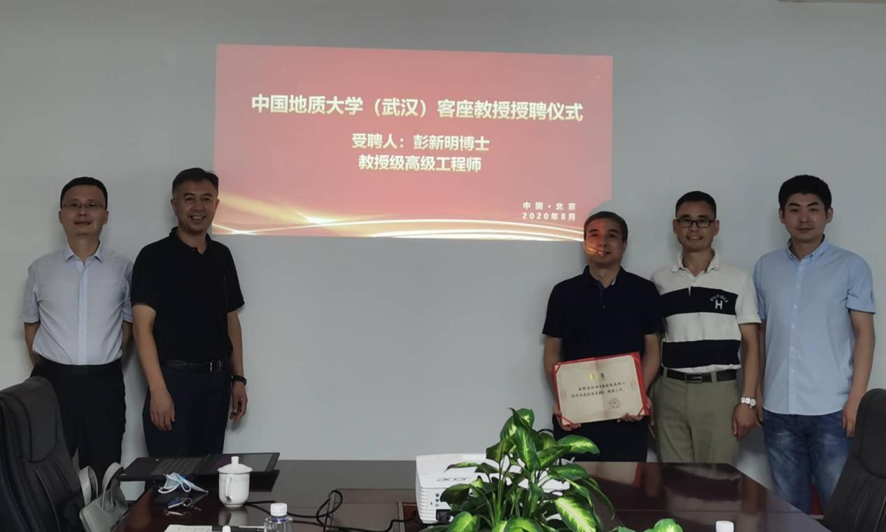 8月12日下午,高清av (武汉)聘请彭新明博士为客座教授的仪式在北京市地质勘察技术院217会议室举行。北京市地质勘察技术院行政负责人王立发、院副总工程师兼资源勘查中心主任彭新明及相关人员出席仪式。仪式由高清av 副院长窦斌教授主持。