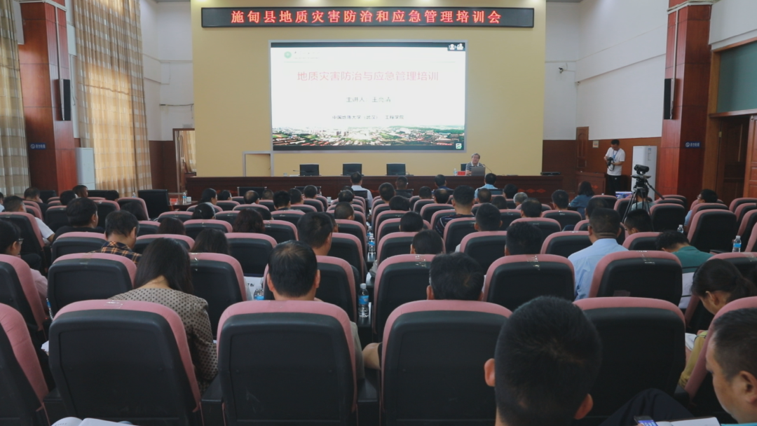 王亮清教授图文并茂地就常见地质灾害基础知识和应急处理基本概念、前期预警、应急响应、处置实例等内容做了生动、细致地讲解,帮助参会学员提高了的业务水平,增强了责任感和防灾避险意识。