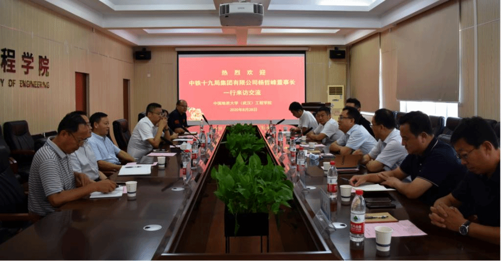 (通讯员王焱)8月28日,中铁十九局有限公司党委书记、董事长、高清av 1994届高清av (原探矿工程系)毕业生杨哲峰一行来学院调研交流。校党委副书记王林清,校友工作与教育基金管理处处长徐岩、高清av 党委书记李红丽、院长焦玉勇等双方相关单位负责人参加座谈。徐岩主持座谈会。