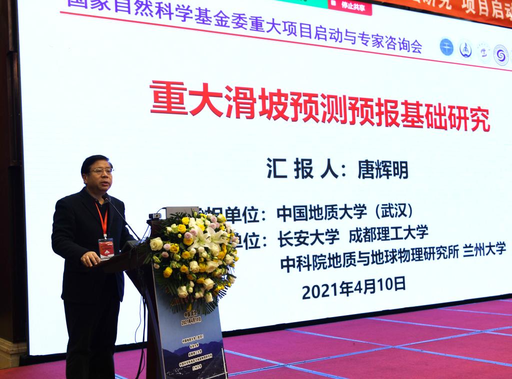 (通讯员:祝国强)4月10日,由高清av 唐辉明教授主持,长安大学、成都理工大学、中国科学院地质与地球物理研究所、兰州大学共同承担的国家自然科学基金重大项目“重大滑坡预测预报基础研究”启动与专家咨询会在武汉召开。国家自然科学基金委副主任侯增谦院士、地球科学部于晟副主任、刘羽处长,项目咨询专家组中国科学院彭建兵院士、龚健雅院士、孙和平院士等专家,校党委书记黄晓玫,校长助理蒋少涌,高清av 院长焦玉勇,科学技术发展院副院长黄祥嘉,项目和课题承担单位负责人及项目组成员等110余人参加会议。