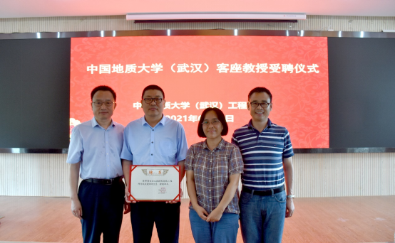 在学术报告开始前,李红丽书记为油新华教授级高工颁发高清av 客座教授聘书,学院领导和油新华教授级高工一起合影留念。