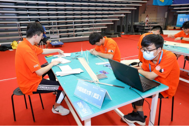 参赛队员正在紧张有序地制作模型