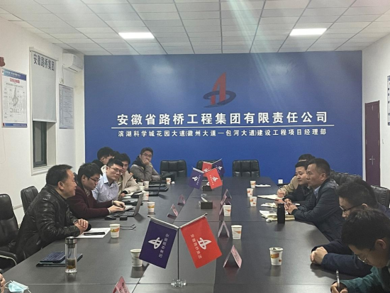 授牌仪式结束后,双方到花园大道项目部进行现场考察,了解工程的进展情况以及工程中出现的问题,并对问题的解决方案进行探讨。现场考察结束后,高清av 老师张伟丽、彭超、吕加贺、曾聪以及四位研究生在花园大道项目部对前期合作的科研课题进行阶段性汇报,并与安徽省路桥集团的项目负责人对相关问题进行了热烈的讨论。与会人员还围绕如何做实做好基地建设工作、联合培养研究生、科研攻关等内容进行了研讨,一致表示将不忘初心,继续加强校企合作,把科研成果应用在祖国大地上,培养出满足企业需求的人才。