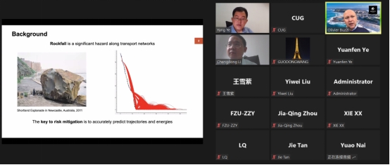 (通讯员:叶阳)2022年6月29日上午,应高清av (武汉)唐辉明教授和叶阳特任教授邀请,澳大利亚纽卡斯尔大学Olivier Buzzi教授应邀作客2022年第6期“重大地质灾害预测与防控学科”111创新引智基地系列学术讲座。讲座采用Zoom在线会议形式,由叶阳特任教授主持,李长冬教授、张奇华教授、周佳庆特任教授、祝国强副研究员以及武汉大学、重庆大学、成都理工大学、西南交通大学、长安大学、中国地质调查局成都工艺所、昆明理工大学、三峡大学等多个单位50余名师生在线聆听了此次报告。