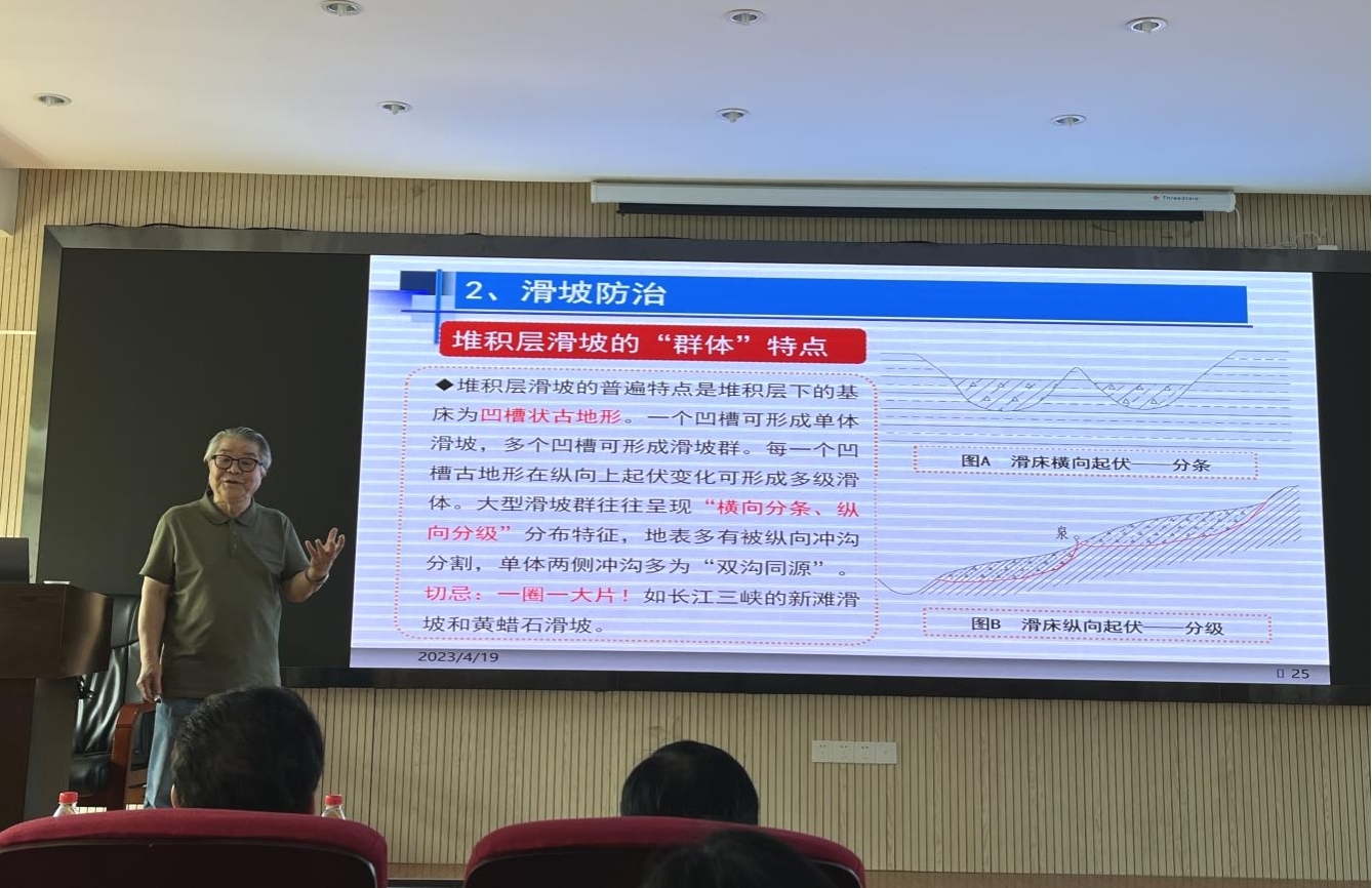 范士凯勘察大师的报告以“关于工程地质学发展的回顾与反思”为题,包括“六十余年形成‘基本理念’”“工程地质学之问”“回顾‘地质故事’”“地貌学、第四纪地质学在土体工程地质中的应用”“回答世纪之问”及“反思、基本经验、期望”等六个部分,他回顾了多年从事铁路隧道勘察、地震小区划、滑坡防治、采动边坡稳定性评价的“地质故事”,重点介绍了地貌学、第四纪地质学在地震砂土液化判别、地震效应研究、深基坑地下水控制及岩溶地面塌陷等土体工程地质中的应用,强调土体工程地质应遵循以地貌单元、地层时代和地层岩性组合这三种要素决定土体工程基本性质的“宏观控制”原则。报告回答了“工程地质学的基本课题”“土体工程地质控制因素”等工程地质学“世纪之问”;针对工程地质学发展方向,强调了基础理论的重要性;最后提出了对工程地质学科发展的建议与期望。