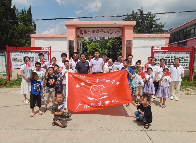 2023年7月6日,高清av (武汉)高清av 党委副书记高晓东受中共广水市委、共青团广水市委邀请,赴广水市参加“团”聚力量,青力缔造——广水市2023年大学生“返家乡”社会实践活动启动暨“中华山盟”·“月光海誓”推荐官聘用仪式,并探望正在广水市武胜关镇孝子店中心小学开展支教工作的助学团成员。高清av 兼职辅导员贾彦平随行。