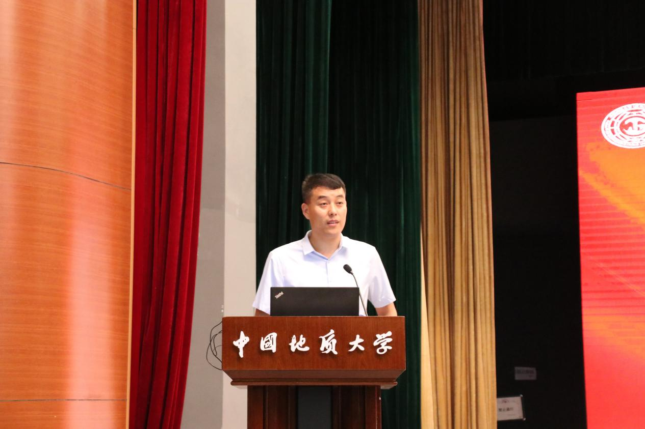 湖北道泽勘测设计院有限公司总工程师谢昭宇先生作为优秀校友代表发言。他以《路虽远,行则将至;事虽难,做则必成》为题,如数家珍地细数自己在地大求学之路上的点点滴滴,详实生动地介绍自己职场奋进之路上的酸甜苦辣,他从学历、注册、职称、创新、创业等五个方面给予学弟学妹们最真诚的建议,强调要锻炼强健体魄,勇敢应对生活挑战;要夯实专业知识,积极应对学业挑战;要参加实践活动,提前做好职场准备。谢校友的分享真诚而有趣,更加激发了同学们探索大学生活的热情。