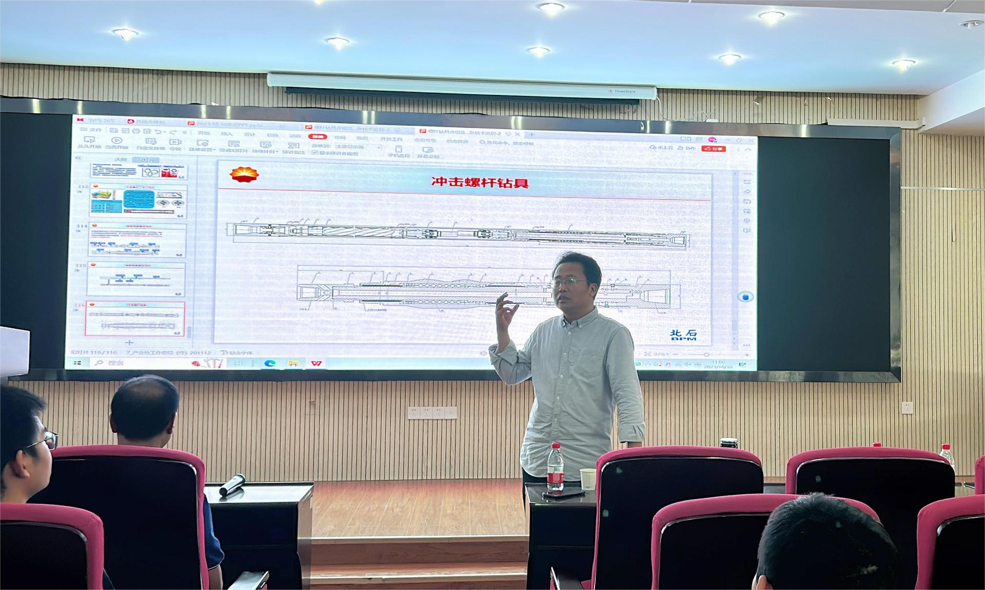 在交流互动环节,参会师生对报告中谈到的“等壁厚螺杆钻具的结构特点”进行了深入交流,于兴胜高级工程师对师生提出的问题进行了详细解答,段隆臣教授对此次报告会进行了总结发言。