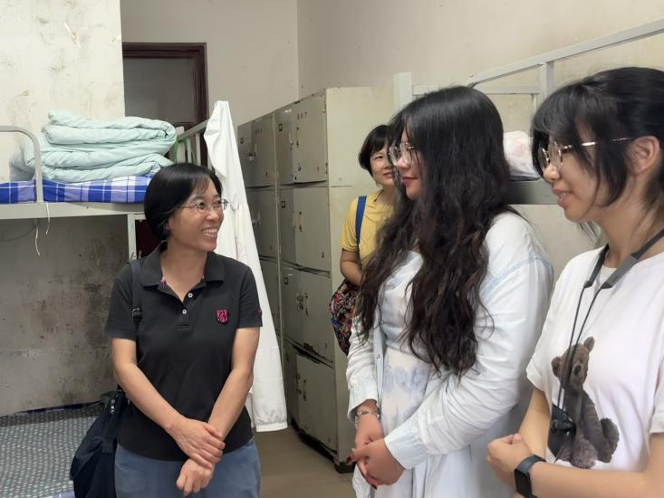 6日下午,李红丽一行前往实习站教师公寓慰问任课教师,她详细了解了教学计划和实习进展,并对任课教师在实习站的工作生活表示了深切的关怀,对老师们为推进学院实践育人工作付出的辛勤努力给予高度肯定。
