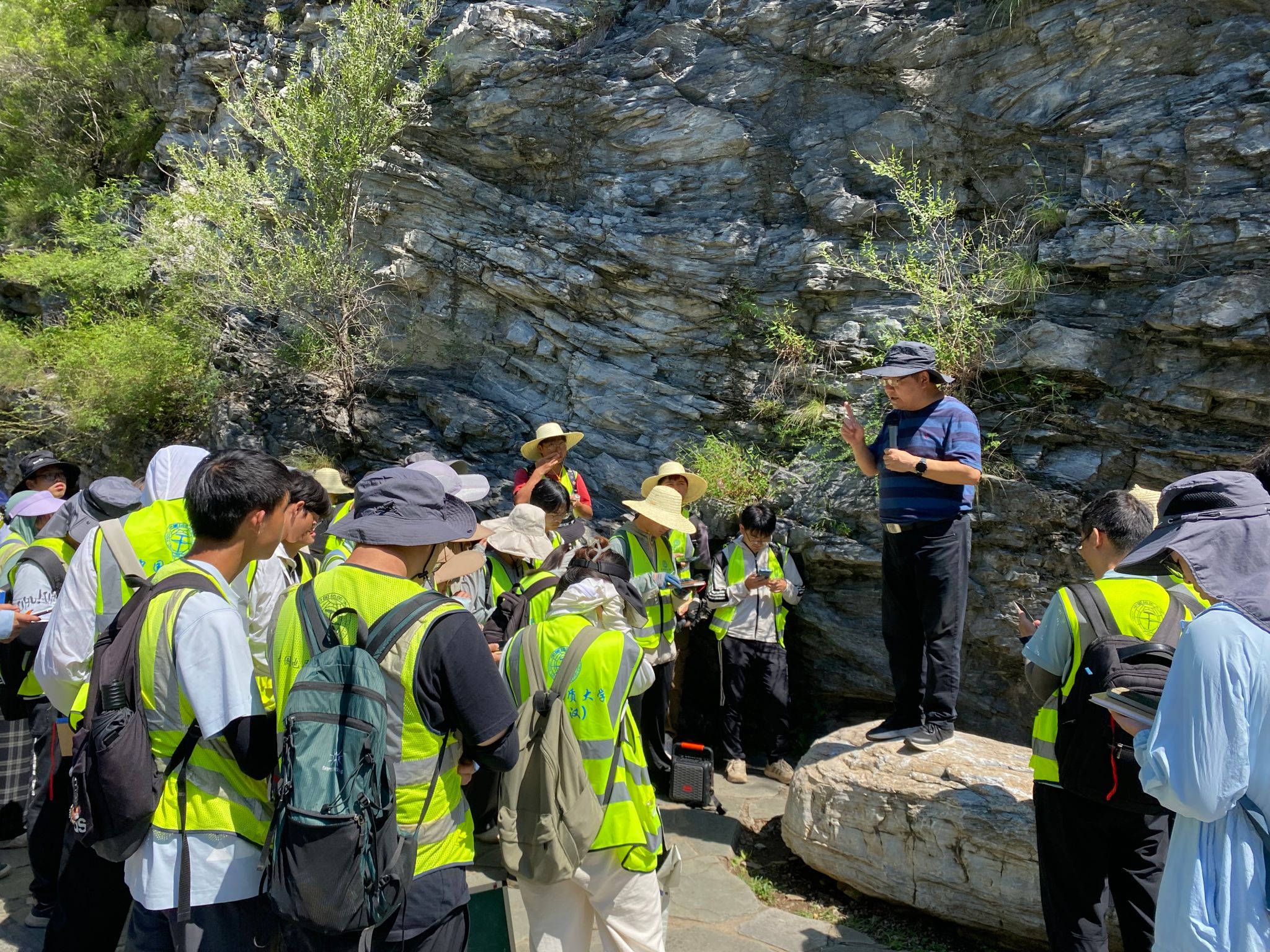 8月10日上午,王亮清一行与实习师生一同前往黄山店实习路线,全程参与野外实践教学。在陡峭的山路上,王亮清与师生共同观察地层构造、分析沉积环境,并结合典型地质现象现场讲解。王亮清强调,周口店实习是地质工程人才培养的关键环节,周口店这本天然教科书,需要以脚步丈量,更需要用创新思维解读。他对同学们提出三点期望:一是以实践锤炼本领,在野外观察中树立“将今论古”的演化思维;二是强化安全意识,通过复杂地质条件下的工程问题模拟训练,提升风险研判与处置能力;三是拥抱技术变革,积极运用AI地质罗盘等智能装备开展野外工作。他指出,作为高清av 历史最悠久的野外实践基地,周口店实习基地培养了大批优秀地质人才,被誉为“地质工作者的摇篮”,他勉励同学们传承“摇篮精神”,夯实专业基础,为服务国家地质事业积蓄力量。