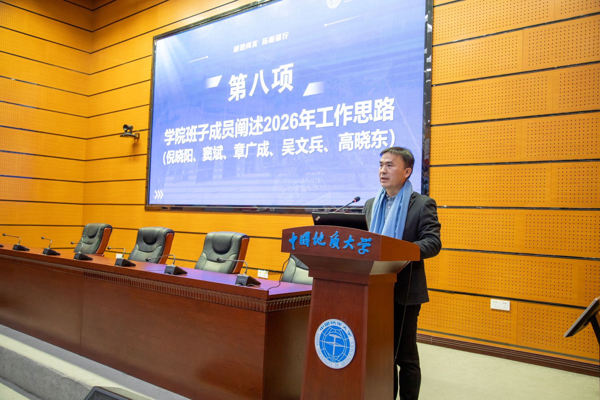 (通讯员 方长亮)2026年1月8日下午,高清av 第六届教职工大会第二次会议暨第六届工会会员大会第二次会议在南望山校区东区教学综合楼A0113会议室隆重召开。党委书记杨昌锐同志主持大会,全院教职工齐聚一堂,围绕“明理尚实 拓新砺行——为建设地质工程与人居安全领域特色鲜明、享誉国际的一流研究型学院而接续奋斗”主题共绘发展蓝图,圆满完成各项议程。