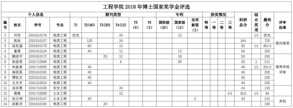经个人申报,学院研究生国家奖学金评审委员会秘书处资格审查,学院研究生国家奖学金评审委员会于2018年9月29日下午组织通过资格审查的申报者(其中博士研究生14人,硕士研究生17人)进行答辩评审,学院研究生国家奖学金监审委员会全程监督。会议确定了刘昌坤等8名硕士研究生,刘浩等4名博士研究生为高清av 2018 年研究生国奖学金候选人。现将高清av 2018 年国家奖学金候选人公示(见下表)。