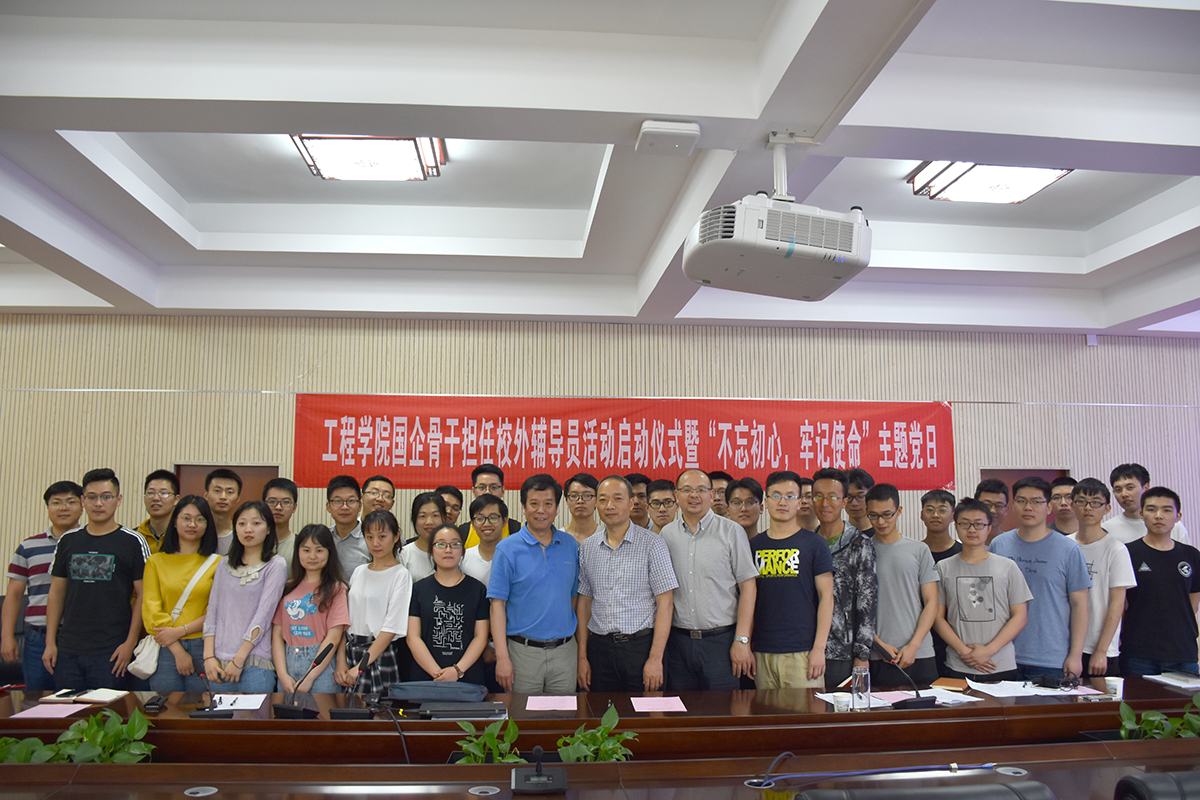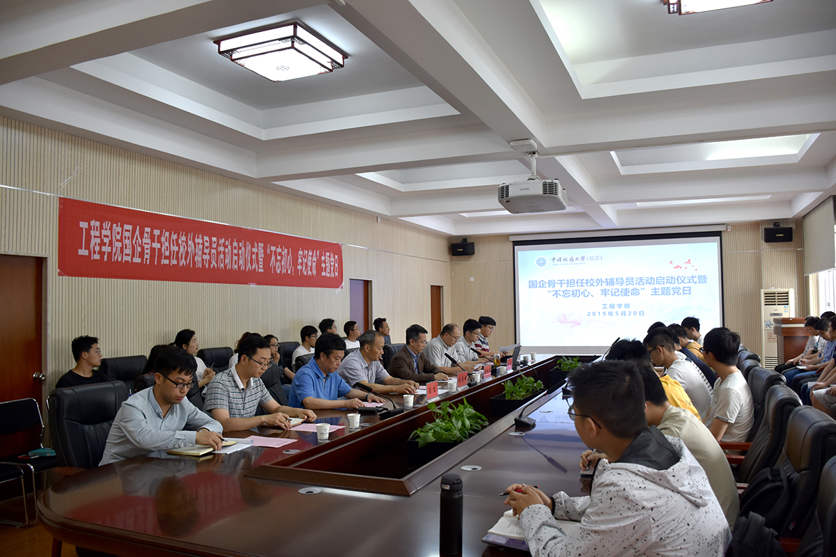 5月20日下午,高清av 国企骨干担任校外辅导员启动仪式暨“不忘初心,牢记使命”我与国企面对面主题党日在工程楼315报告厅成功举行。高清av 校外辅导员、中国黄金集团湖北三鑫金铜股份有限公司提升车间主任、党支部书记刘月中,学校学工处副处长苏洪涛,高清av 党委书记陈飞、副书记江广长、全体辅导员及四个学生党支部共40余人参加活动。