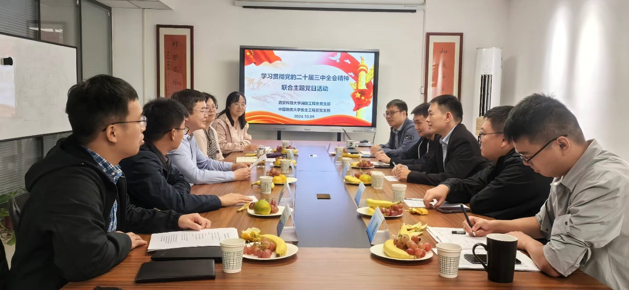(通讯员 周克清、王涌宇)为深入贯彻落实党的二十届三中全会精神,坚定理想信念,强化交流合作,积极投身立德树人和科研攻关创新,10月9日上午,高清av 安全工程系党支部书记周克清、支部党员陆凯华、王涌宇前往西安科技大学,与安全学院消防工程系党支部联合开展“学习贯彻党的二十届三中全会精神”主题党日活动。西安科技大学安全学院副院长兼消防工程系党支部书记马砺教授、系主任张嬿妮教授、党支部副书记盛友杰、组织委员王翠霞、纪检委员郭芳义等党员代表参加活动。