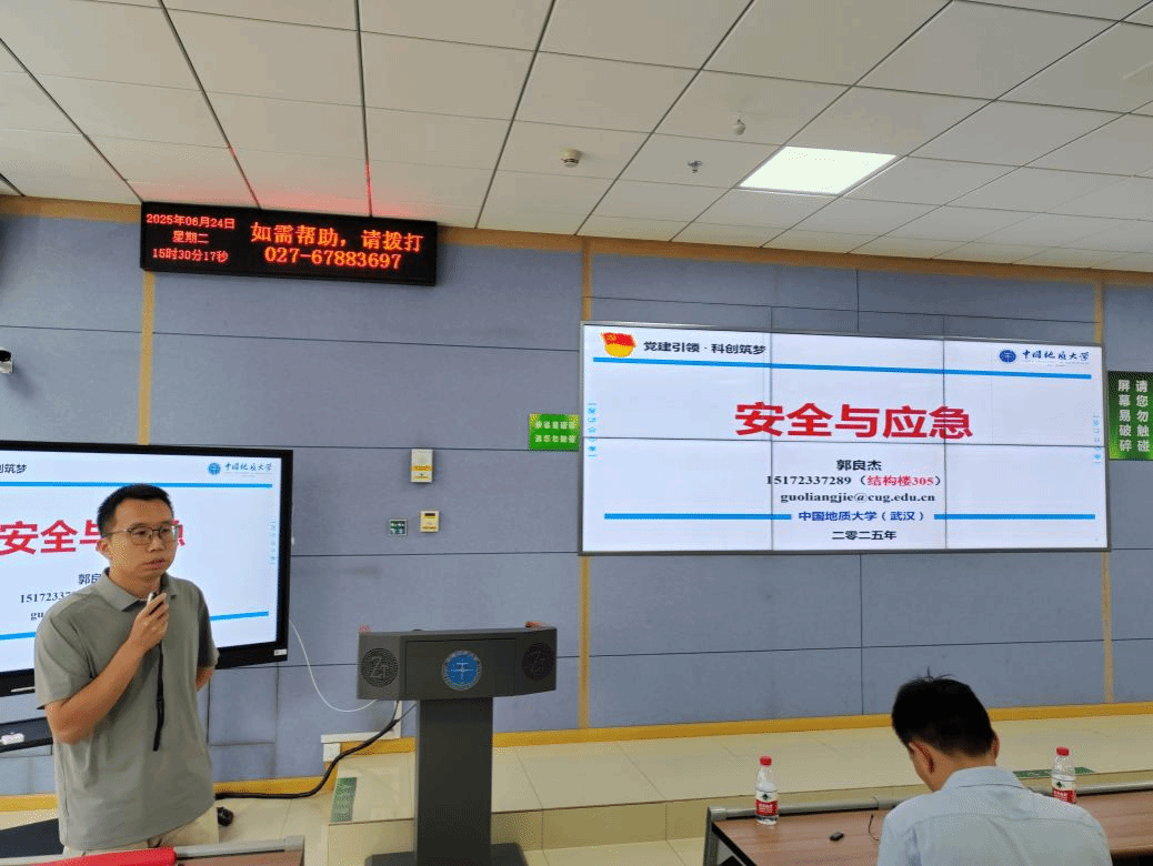 随后,郭良杰副研究员以“生动详实的典型案例”以及“系统详细的专业知识”,层层深入地解析“安全工程”与“应急技术与管理”的专业内涵与外延。既夯实了同学们对专业基础的理解,也为大家在未来专业分流时的方向选择提供了清晰指引,让2024级本科生对专业前景有了更具象、更深刻的认知。此外,他也从发展历程、社团特色、资源支持以及实践育人等方面介绍了安全工程系学术科技类社团——高清av (武汉)“地心守护”社团。他提到,社团作为科创与实践的“孵化站”,鼓励学生通过社团活动积累实践经验、锤炼过硬本领,将专业知识转化为解决实际问题的能力。